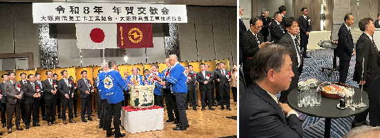第2部表彰式では永年勤続従業員表彰が(有)シンキデンキ 三枝和希氏、(株)三光電氣 新開和也氏に贈られました。